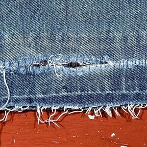 See pics for any distress that makes this pair unique, that may include repairs, stains, rips, holes-hand stitched raw edge unhemmed leg opening with inner iron on patch, holes, staining, authentic distress