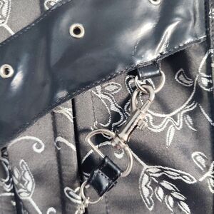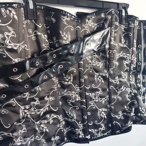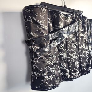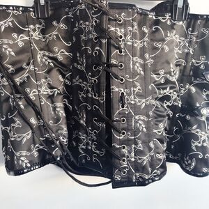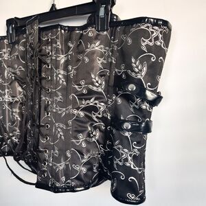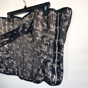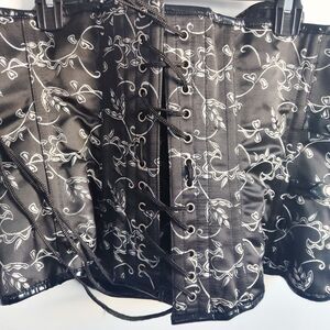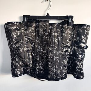 38" Black Silver Satin Underbust Wench Corset Tapestry Floral Embroidery Lace-Up