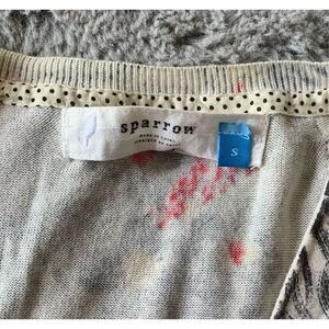 38 SPARROW ANTHROPOLOGIE gray FLORAL Pima cotton RUFFLE OPEN CARDIGAN SWEATER