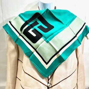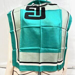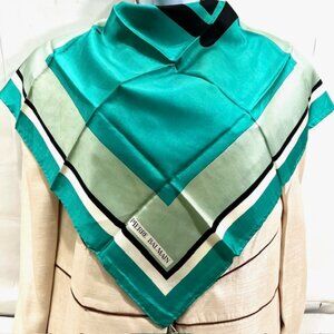 #38) Vintage Pierre Balmain mini scarf 100% silk satin, 22" x 22" , dark navy blue white trimCondion Condtion still good , show white spot or dust o powder make up Sell As Isx 22" , dark navy blue white trimCondion Condtion still good , show white spot or dust o powder make up Sell As Is