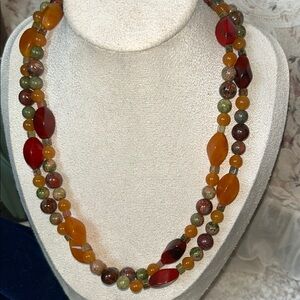 This stunning necklace features a blend of vibrant red and warm brown beads, perfect for adding a pop of color to any outfit. Ideal for any occasion, this piece is a must-have for your jewelry collection.