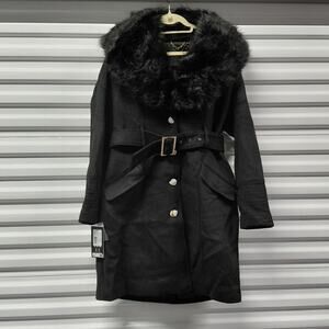 Marciano Loreta Wool Blend Belted Coat Black Faux Fur Collar Women’s Size 8 NWT $380