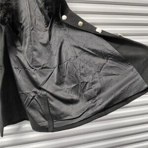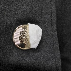 Design: Removable faux fur collar, gold-tone embossed buttons, belted waist with logo buckle
