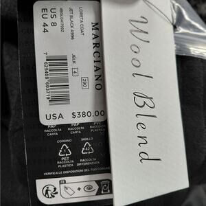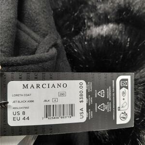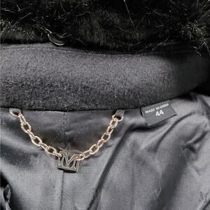 $380 NWT Marciano Loreta Women’s Wool Blend Belted Coat Size 8 Black Fur Collar