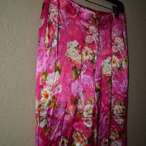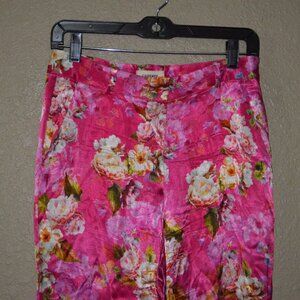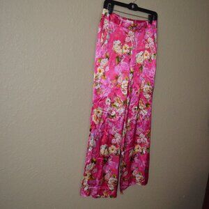 $380 Sz 2 L'AGENCE Colin Floral Satin Cabaret Pink Pants Slacks