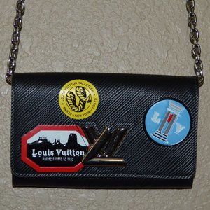 $3800 Louis Vuitton Epi World Tour Twist Chain Wallet Noir Black Crossbody