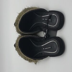 382- Zara Basic Collection Black Fringe Flat Mules Size 7.5 NWT