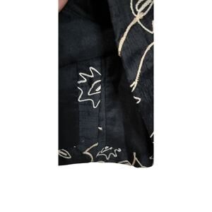 3848)Appleseed Silk Button Down Floral Geometric Black Gold Embroidery Jacket 1X