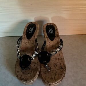 385 Fifth Black and Tan Women's Wedge Sandals 4 inch heel size 9