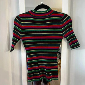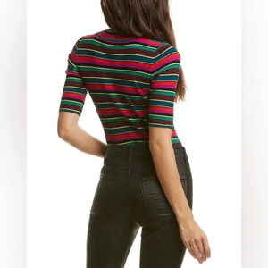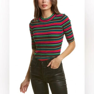 385 Milly Stripped Ribbed Short Sleeve Blouse Size Small Color Black Red