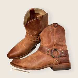 $388 Frye Wyatt Harness Cognac Brown Leather Cowboy Western Short Ankle Boot