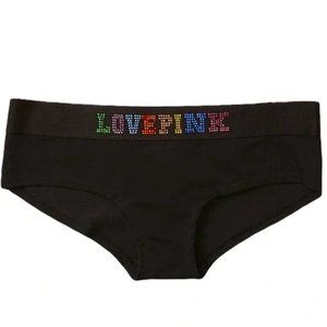 1 Pure Black with Diamante Logo Hipster Panty...Size XLarge