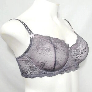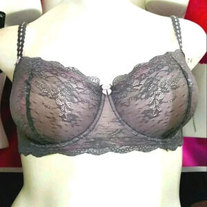 38C Felina 5894 Harlow Sheer Lace Full Bust Underwire Gray NWT