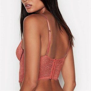 38C/L VICTORIA SECRET Unlined Long Line Bra Top Set Bustier V-String panty lace