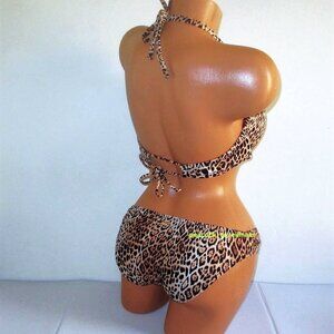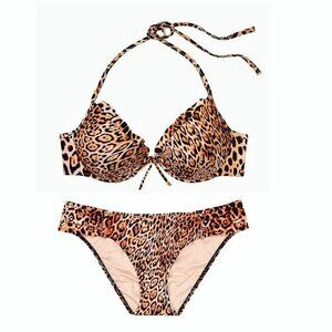 38C/XL VICTORIA SECRET Swim Push-Up Top Bikini Set Knockout Bottom Leopard ruffl