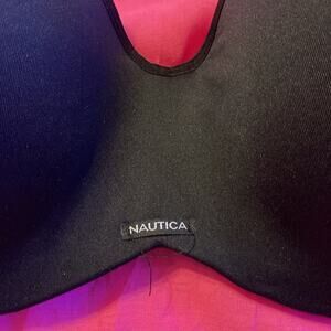 38DD Black underwire Nautica full figure padded bra. No picks on bra or straps. Has adjustable straps and wider shoulder straps. Excellent condition. Smoke free home.