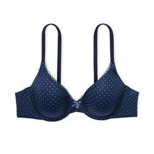 38DDD VICTORIA SECRET Body by Victoria Lightly Lined Full Bra Navy Polka dot
