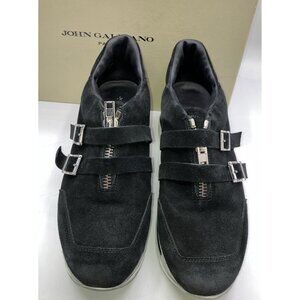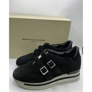39 John Galliano Buckle Monk Strap Platform Sneakers Black Suede