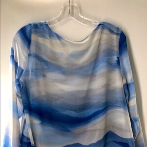 39. Scoop Neck Long Sleeve Blue/White Balloon Hem Top