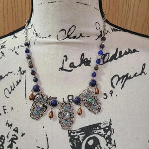 #39 set of 3 necklaces shell beaded pearl dangle filigree pendant