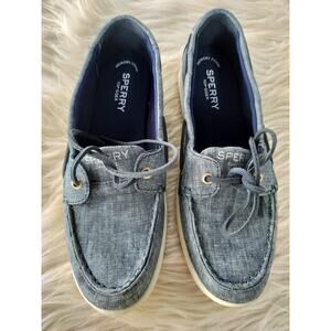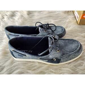 3917) Sperry Woman Fish1-eye Chambray Navy Top Sider Boat Shoes Size US 8.5