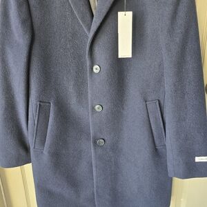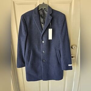 $395 Calvin Klein Long Coat 40 Mens Prosper Blue Wool Blend Heavy Old Money