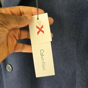 Elevate your wardrobe with this stylish Calvin Klein long coat. Made from a premium wool blend, this coat offers both warmth and comfort. The coat features a solid blue color with the brand's logo and button accents. It has a collared design with pockets and is lined with polyester.