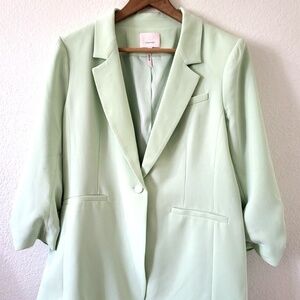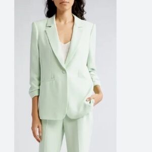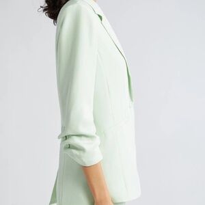 $395 Cinq A Sept Khloe Ruched Sleeve Blazer in Minty Delight