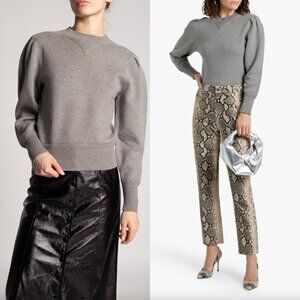 $395 Isabel Marant Gray Cotton Knit Puff Sleeve Sweater Kelaya Top size FR 36/4