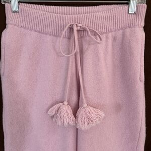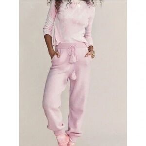 Love Shack Fancy Tristan sweat pants in a slim fit jogger style. Elasticated ribbed waistband. Functional draw cord with tassels. Side seam pockets. Ribbed cuff at the leg opening. Pull on style. Cozy and soft feel. Color: pink. Material: 90% wool, 10% cashmere. Size XS. Super soft and cozy! I own another pair and I love them! These retail for $395 get them now at a great price!