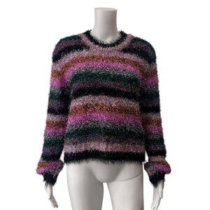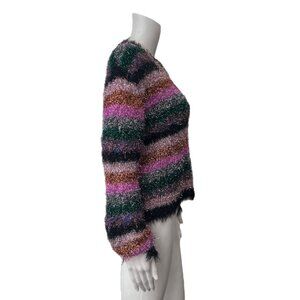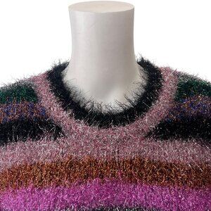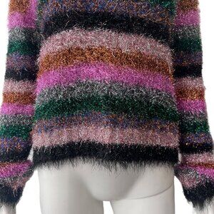 $395 Milly Multi Stripe Rainbow Metallic Tinsel Pullover Sweater size Small