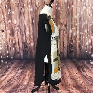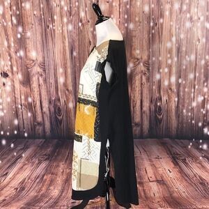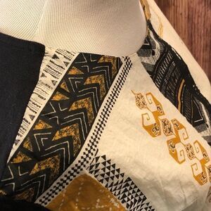 Features patterned front and solid black back. 100% cotton.
