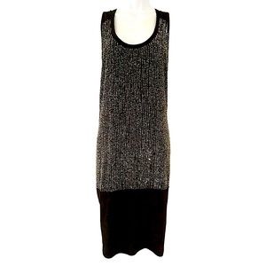 $398 Eileen Fisher Sequin Rivulet Dress Medium Black 100% Silk Vintage Quality