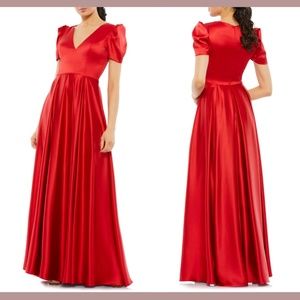 $398 IEENA Mac Duggal [ 14 ] Puff Sleeve Satin A-Line Gown inβ Red