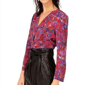 $398 IRO PARIS 100% Silk Red Purple Floral Print Blouse Top – Size EU 40/ USA 8