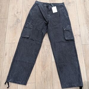$398 Mens JOHN ELLIOTT Washed Corpus Cargo Pants Black Large