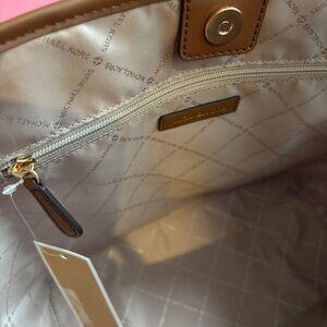 $398 Michael Kors Maeve Largo Canvas Open Tote Business Travel Carryon Handbag