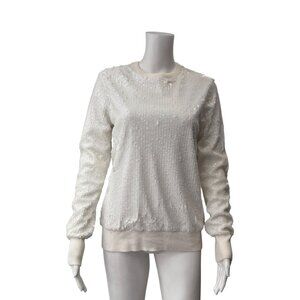 $398 NWT Equipment Ivory Shane Sequin Pullover Crew Neck Sweater Top size Small
