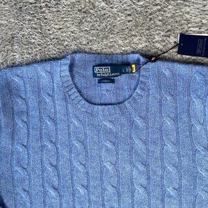 Item: $398 Polo Ralph Lauren The Iconic Cable Knit Cashmere Sweater Men Blue