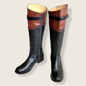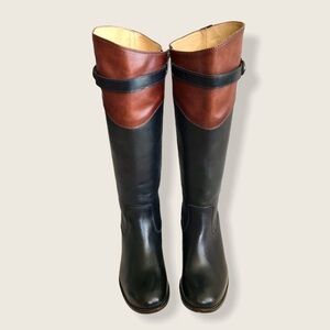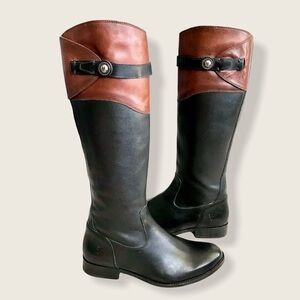 $399 Frye Molly Button Black Brown Multicolor Leather Equestrian Riding Boots