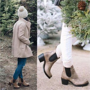 $399 Frye Sabrina Chelsea Vintage Tan/Taupe Leather Pull On Heeled Ankle Boot