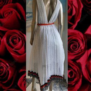 - JUST STUNNING!!! OSCAR DE LA RENTA RUNWAY - WHITE EYELET GORGEOUS PLEADED RUNWAY DRESS -