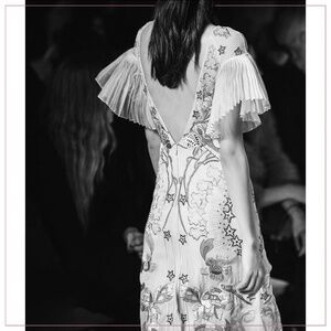 “This unforgettable vision of modern bohemianism from Temperley London shows why this designer is so beloved by royalty, brides and A-listers alike. Earning its place amongst fashion's power houses, the label's beautifully feminine aesthetic can be attributed to its use of embellished textures, bespoke fabrics and intricate embellishment.”