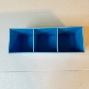 3-Compartment Blue Plastic Makeup Brush & Pen Holder Organizer