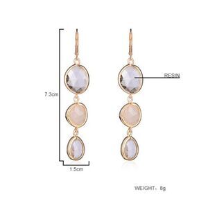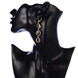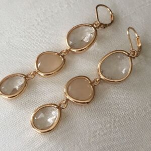 Three Crystal Dangle Drop Earrings Dove Gray Blush/Peach NEW