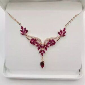 3Ct Marquise Red Ruby Drop Necklace 14KT Rose Gold Plated Silver Necklace $650