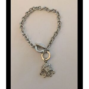 If you like your jewelry to be noticed, look no further! A beautifully faceted bezel set oval cut genuine amethyst gemstone sits in a two tone bead design. The setting and band is done in a heavy 18k white gold plate finish with 18k yellow gold plate accents. It is size 9.