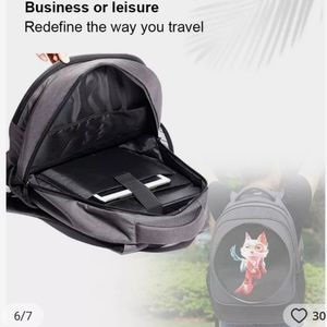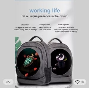 3D Backpack (Requires power sources like a power bank) uses images to make 3D hologram effects. Perfect for any occasion like Halloween Christmas, Raves, Parties or just looking cool. You must download an app and unfortunately it only works for Apple products so if you have IOS this is an awesome Backpack. I unfortunately have Android and the return process was a nightmare. please only reasonable offers as this is an expensive rare item. Come with USB C type cord and instructions.