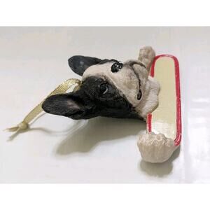 This Boston Terrier dog ornament is a charming addition to any Christmas tree. Made of resin, this ornament features the beloved Boston Terrier breed and is perfect for holiday decor. The ornament is a unique and festive piece for any ornament collection. Celebrate the holiday season with this adorable Boston Terrier ornament.