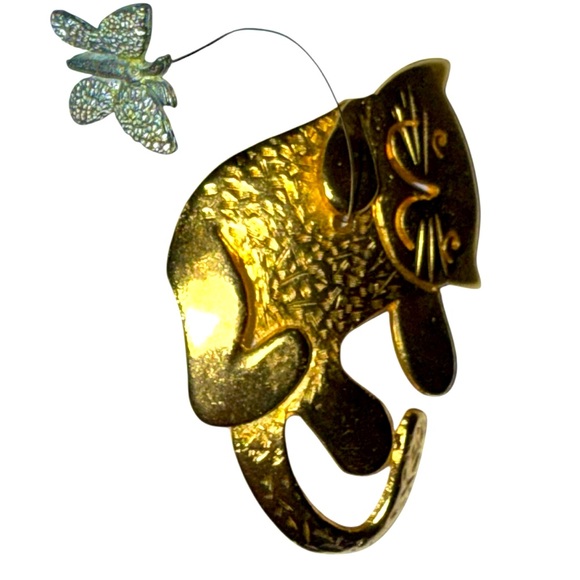 3-D Brooch - Cat Playing w/Butterfly on a Wire